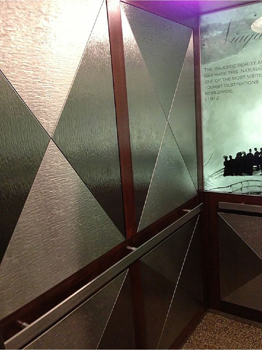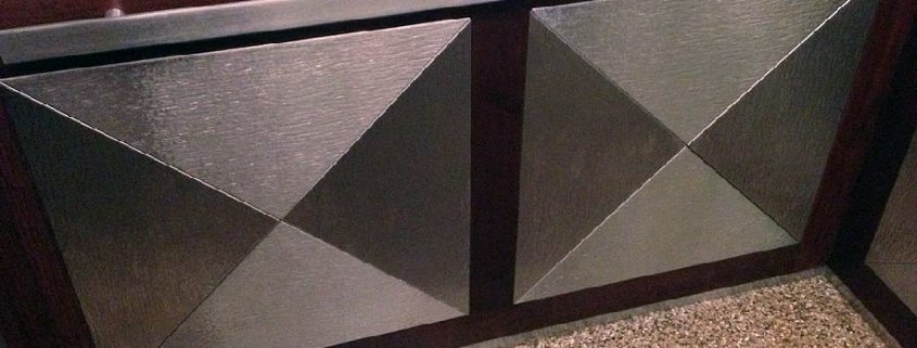 Owner designed and fabricated for a loft in Denver Co. Textured metal (1RL) was ordered to size with formed edges. The metal was attached to sheets of 1/2 inch plywood then step mounted on the wall to create depth. The “floating” bed platform is also trimmed with 6 inch strips of the same metal.