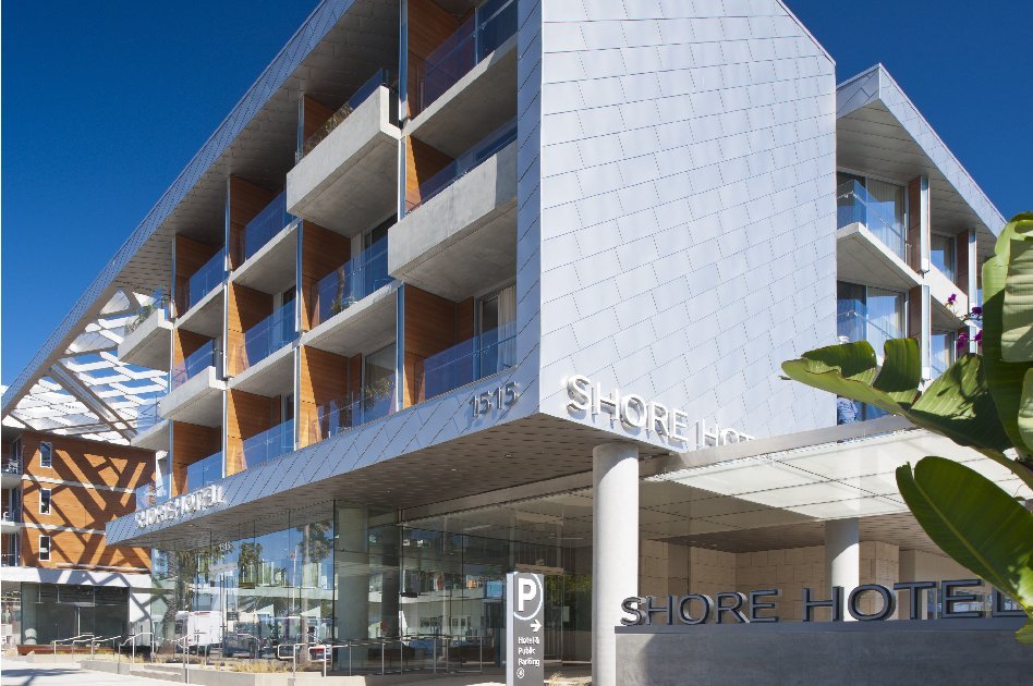 The story begins with a worn Travelodge and the faded Pacific Sands and what evolved is Shore Hotel. The hotels are owned by a family business led by Jon Farzam and his partners who explained that Shore Hotel has been seven years in the making. Farzam and his associates led feasibility studies, participated in city planning and gained city council approval—all before breaking ground in January 2010; top out occurred February 11, 2011. Gensler, Santa Monica was selected as the lead architect for the luxury hotel.