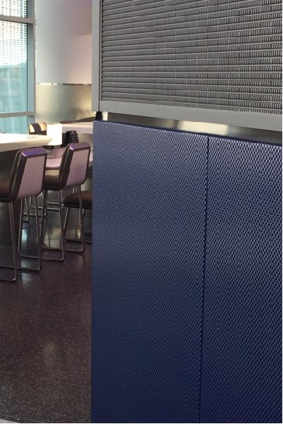 Places generally not seen by the public usually require special attention because of the rough use they receive. Our deep textured panels can be used in these applications as wainscoting, putting the protection where it is needed and saving the cost of full wall panel coverings. Additionally, our engineered metal surfaces in thicknesses of up to 1/8″ can provide both secure and good looking barriers. Deep textured metal, combined with textured perforated metal, can create both bold and secure designs.