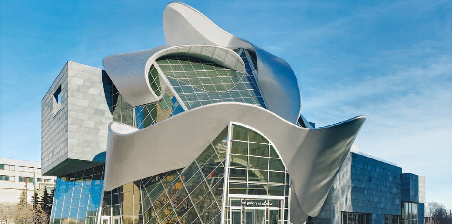 Our micro textured metals were used to form the eye-catching planar structure that curves through the Art Gallery of Alberta’s exterior design.