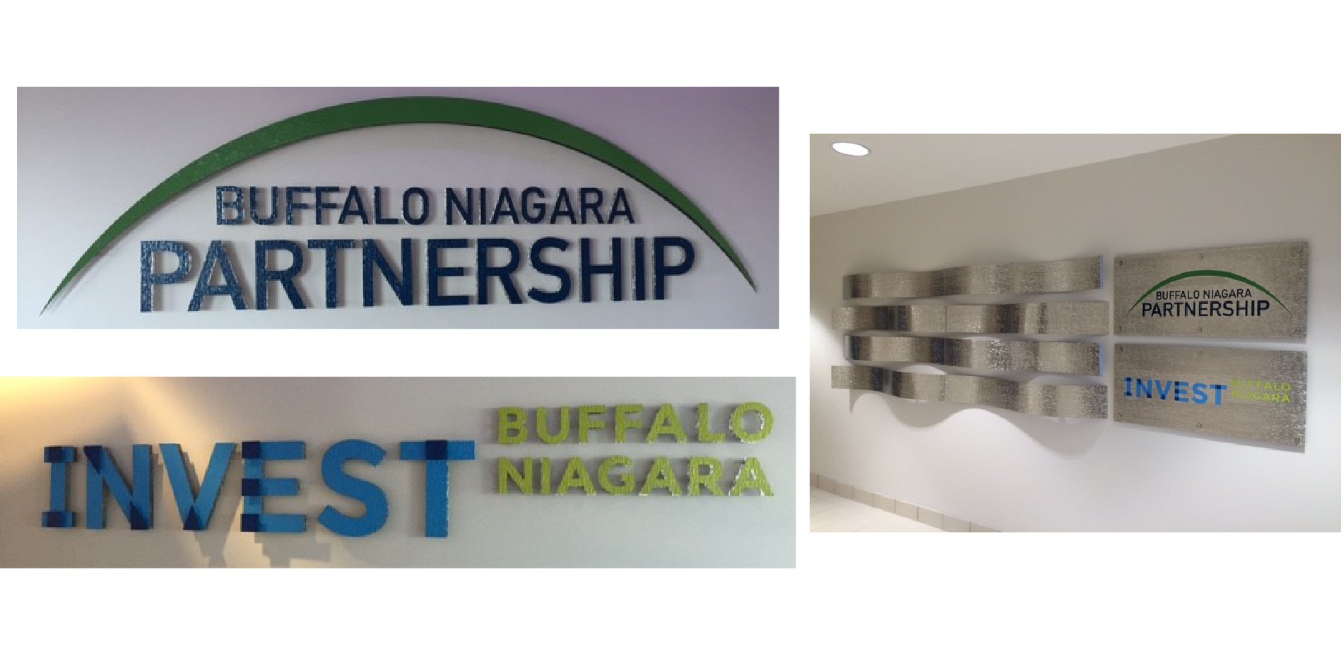 We fabricated decorative panels for the Buffalo Niagara Partnership’s lobby, including rendering their corporate logo in painted 3D metal.