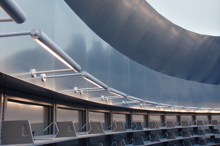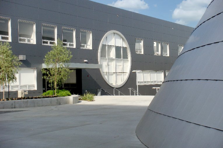 Rigidized® Metals’ InvariMatte® micro textured stainless steel makes up the cladding on the exterior of the library, auditorium and helix at this Los Angeles high school. The micro texture provides easy clean-ability, durability and aesthetic appeal, as well as provides both thermal and solar reflectance, saving energy.