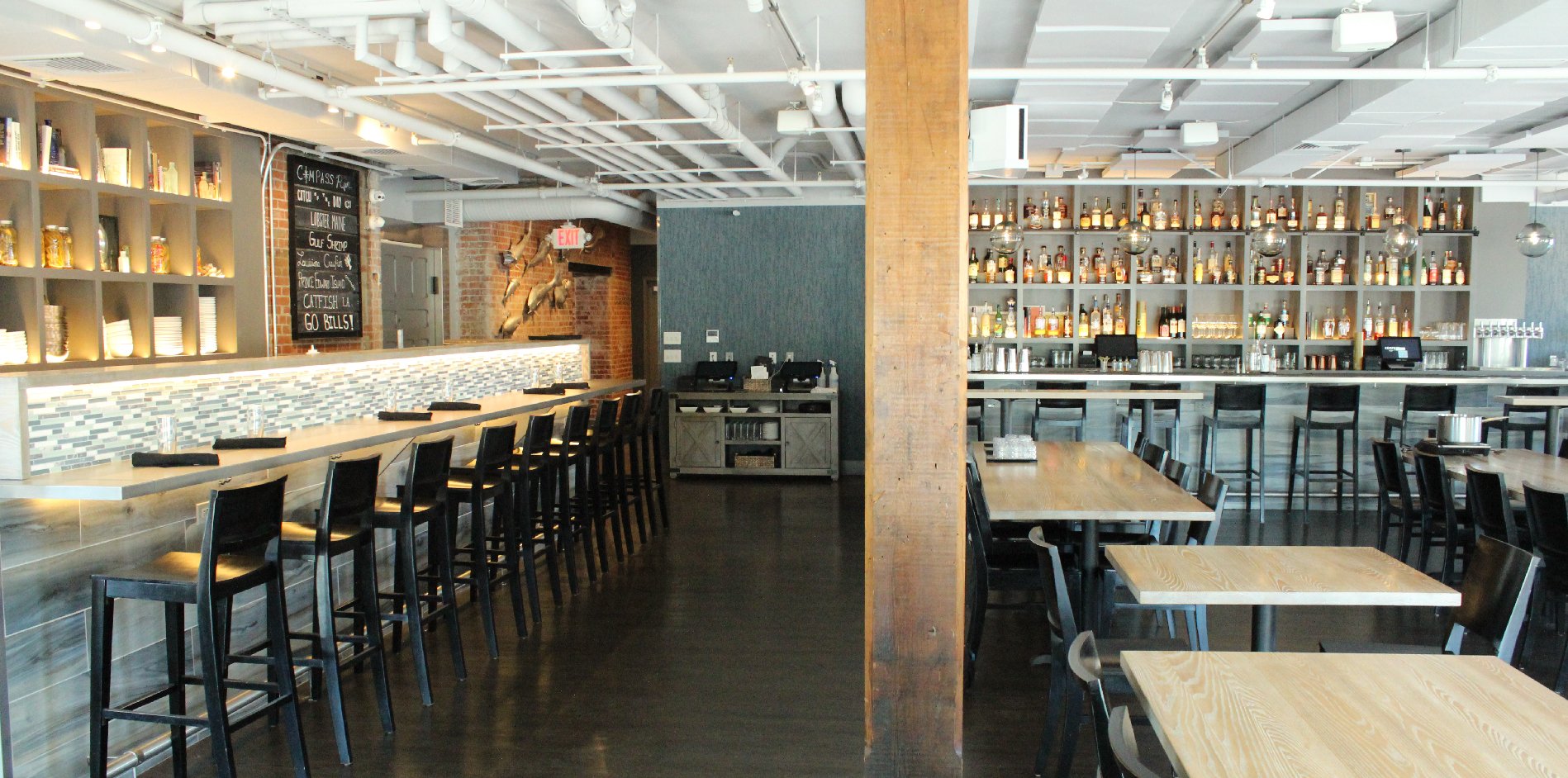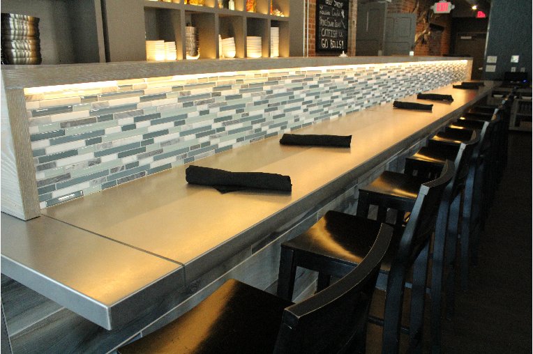 Our engineered metal clads the bar and counter tops of the Compass Run bar and restaurant in Buffalo, NY, providing an appealing and low maintenance surface.