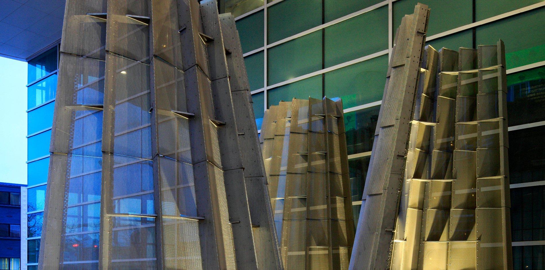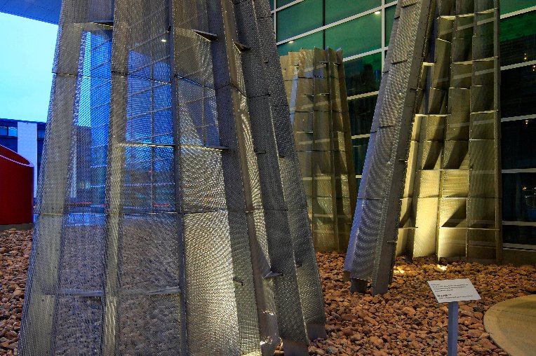 Our perforated panels form a set of metal windscreens outside the Buffalo, NY Conventus Center, acting as a buffer from the weather.