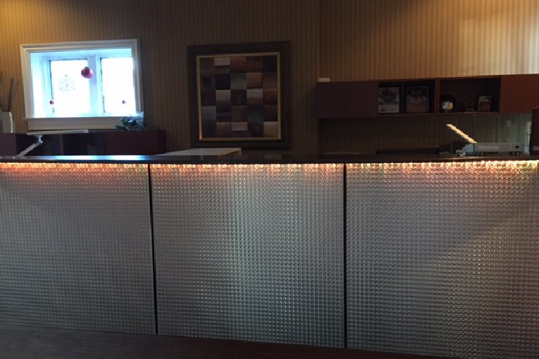 Our deep textured panels are a great solution for reception desk fronts, offering a durable yet appealing surface for high traffic interiors.