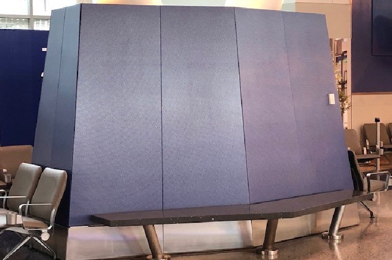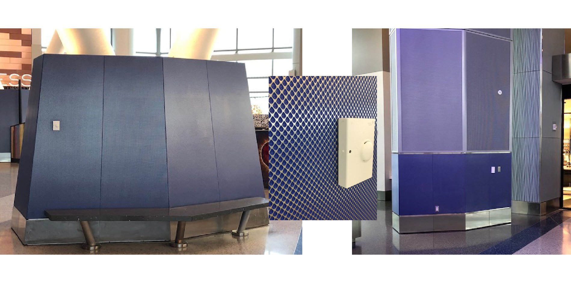 Rigidized® Metals’ Middlesex pattern (6WL®, non-prime side highlighted) in blue, makes up the unique column covers at George Bush International Airport in Houston, TX. The deep texture hides abuse, and the color provides a unique aesthetic to the column covers themselves. By highlighting the material after it’s been powder coated, the color remains in the recesses of the pattern, and is thus protected from damage.