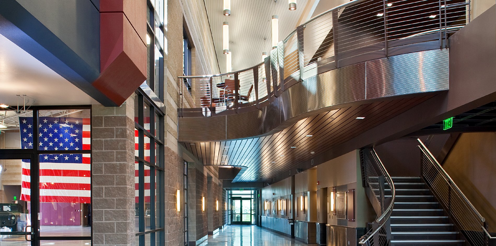 Our deep textured metal panels can also be purposed as durable wainscoting for interiors, as seen in the Readiness Center in Grand Junction, CO.