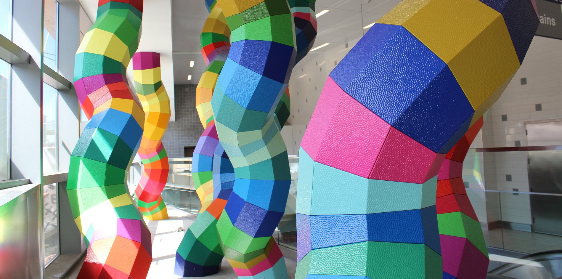 We collaborated with Shasti O’Leary Soudant to create this public sculpture consisting of powder-coated, textured metal in an array of colors.