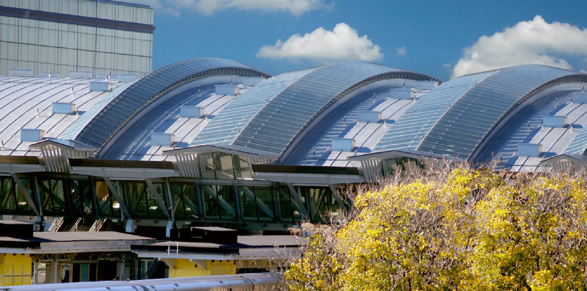 Rigidized® Metals’ InvariMatte® micro textured metal makes up the roofing panels at the Jamaica Air-Train Terminal at JFK International Airport. The micro texture provides easy clean-ability, durability and aesthetic appeal.