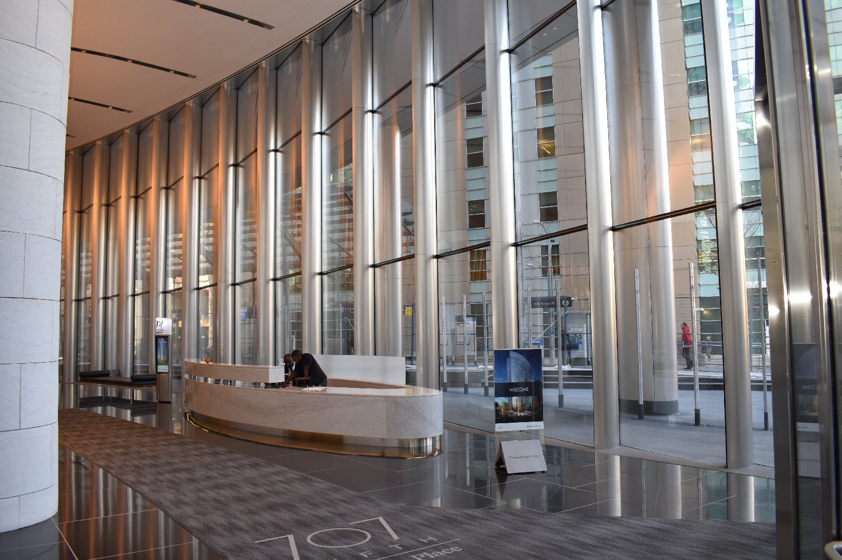 A combination of our micro textured metal panels are used as trim and column covers in the Manulife Tower, providing durability in high traffic areas.