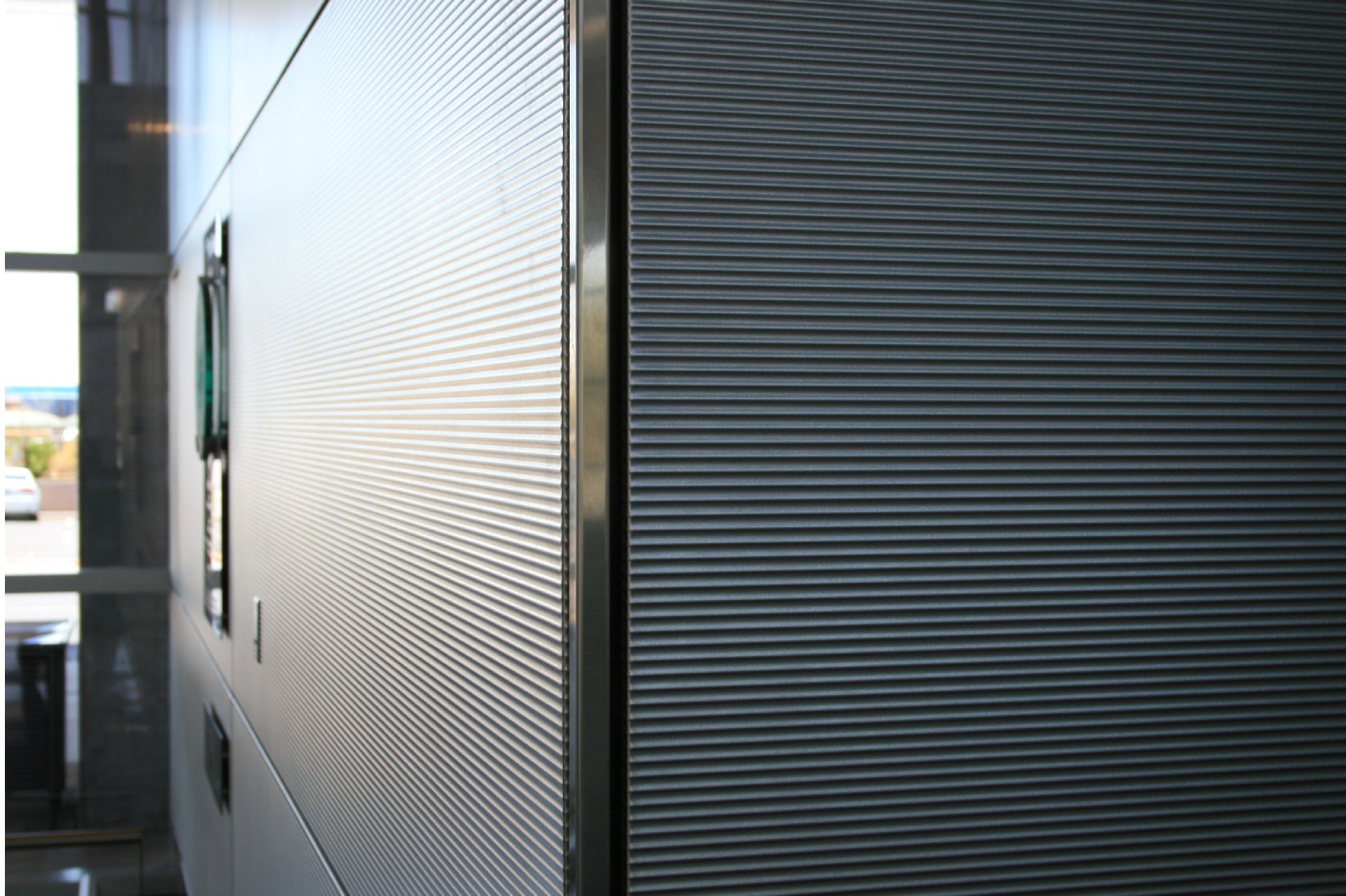 Rigidized® Metals’ 5HR pattern on Sandtex® makes up the TXTR Wall Interior Metal Wall Panel System that clads the walls in the Phoenix Sky Harbor Airport, including the Phoenix Sky Train.