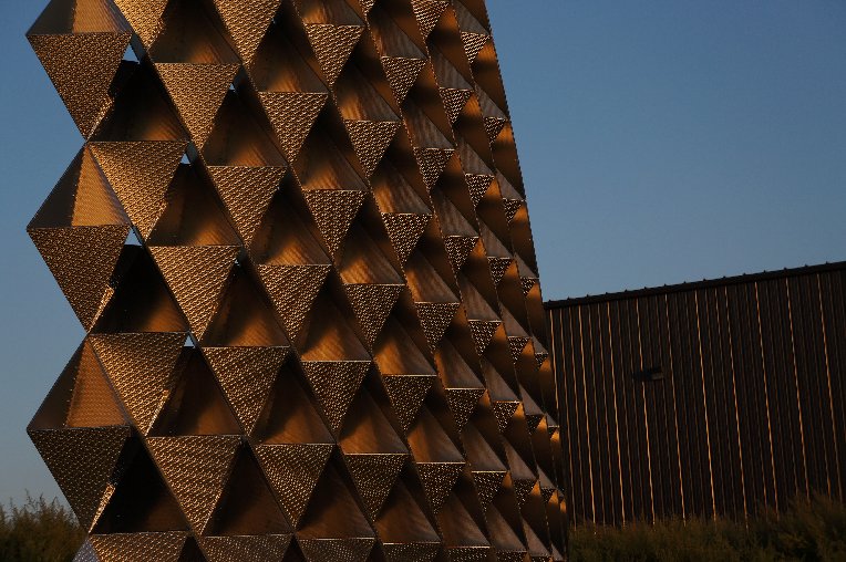 Rigidized Metals and University at Buffalo fabricated this thin, self-structuring metal screen, which is weather-resistant and light weight.