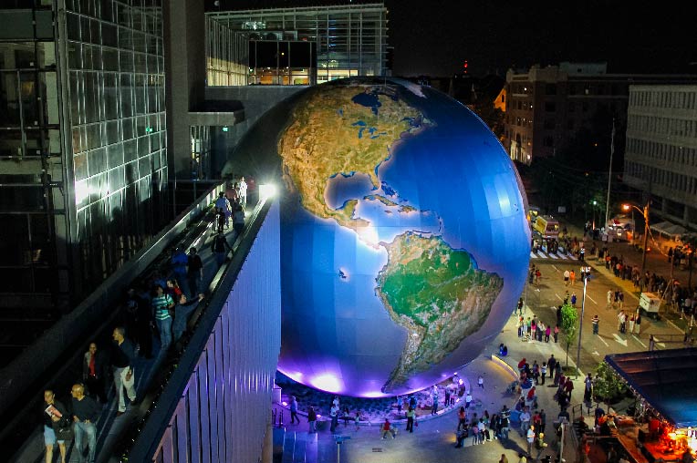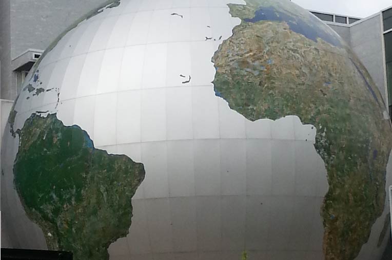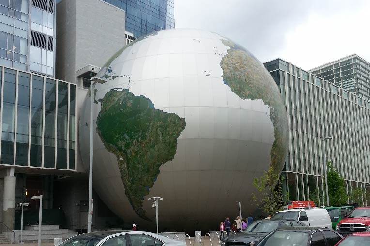 Rigidized® Metals’ InvariMatte® micro texture was used in the creation of the globe outside of the North Carolina Museum of Natural Sciences in Raleigh, NC. Each panel is uniquely curved to build a sphere. The land masses are shown in the form of a vinyl appliqué applied to the InvariMatte® sphere. The micro textured surfaces provides a perfect projection screen for the absorption of color from LED lighting. In addition to durability, natural cleanability, and low maintenance costs, while also reducing glare from the sun, the nondirectional surface also promotes a uniform appearance of panels that require juxtaposed grain directions.