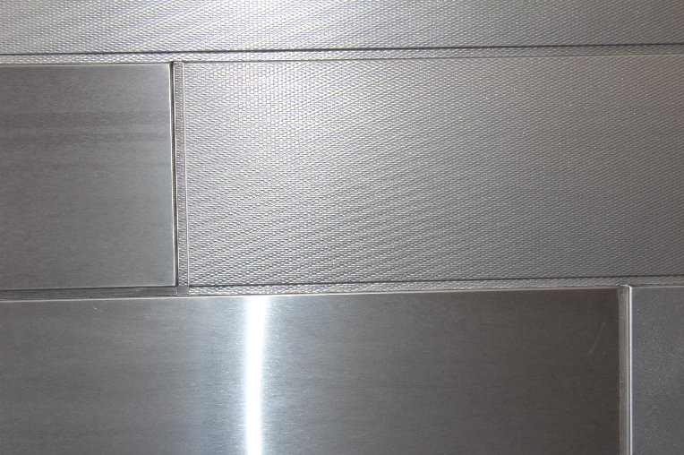 Rigidized® Metals’ created a backer-less wall panel system that was installed in a covered walkway at the Rochester Institute of Technology. Three different surface conditions were used on the panels: Rigidized® Metals’ pattern 5WL® with RND finish; smooth material with RND finish; and smooth material with #4 satin finish.