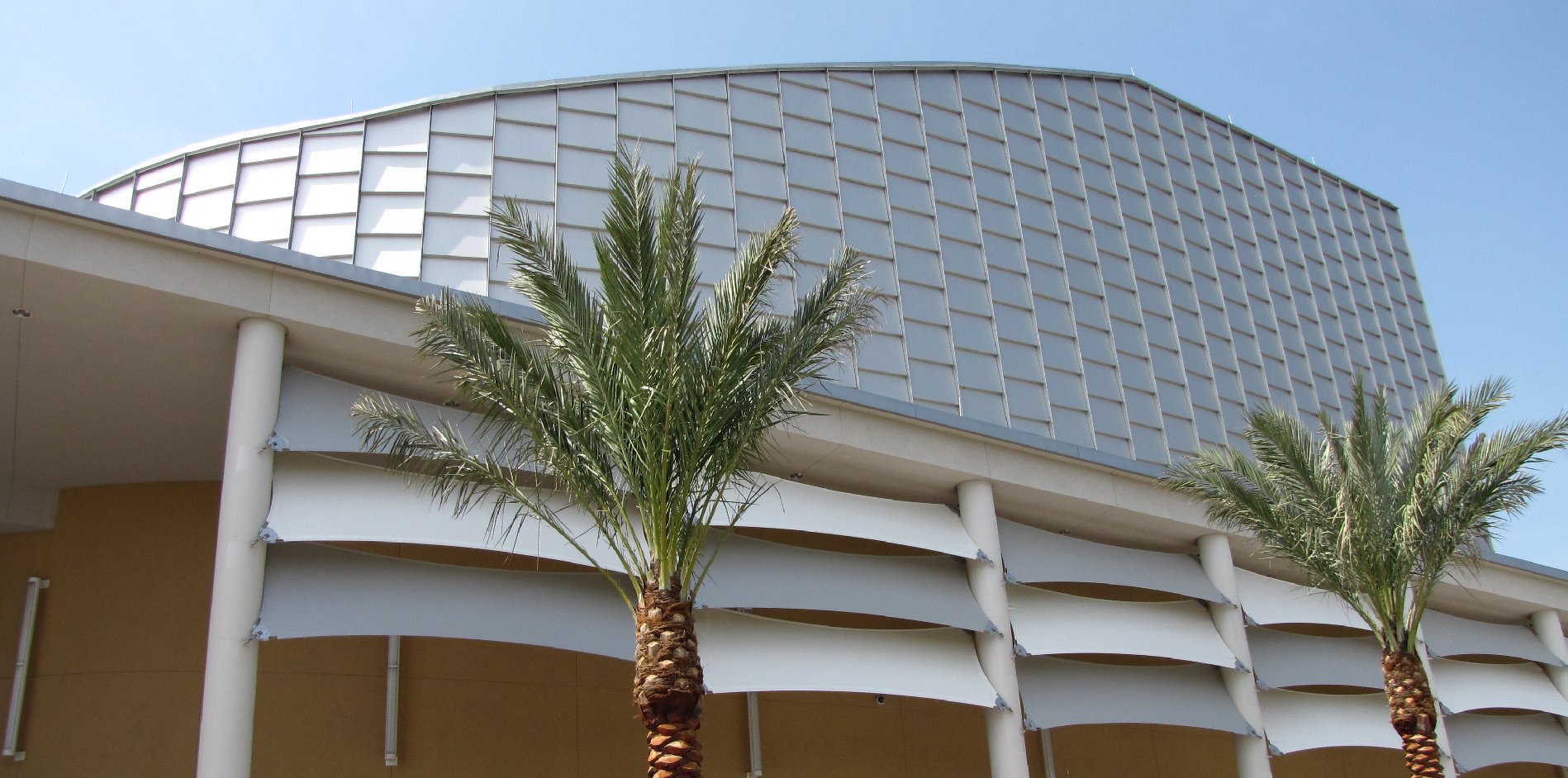 Our micro textured metal panels help to reduce glare and maintenance costs on the exterior of the St. Bernard Parish Cultural Arts Center.