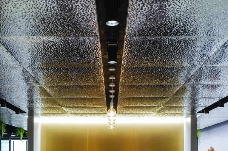 Rigidized® Metals' 1WND is a textured metal pattern often used in architectural applications.