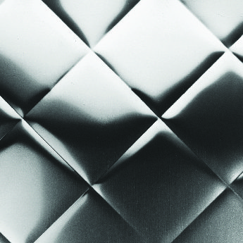 Rigidized® Metals’ deep-textured metals are created by a unique process, which enhances the durability and beauty of flat metals. Our texturing process can be applied to all metals, though our primary product is stainless steel; other materials available include aluminum, carbon steel, copper, brass and titanium. Our products are available in various widths and thicknesses, and can be rolled in both coil and/or sheet form. These offerings vary by pattern, surface type and alloy, and pattern depth varies with gauge.