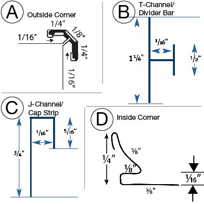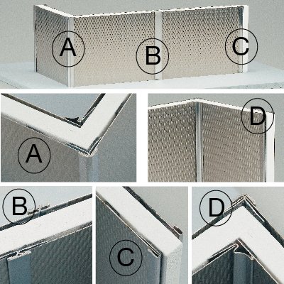 Trim strips and corner mouldings complete the easy installation of backsplashes and wall cladding systems. They are made from corrosion-resistant 430 stainless steel with a bright annealed finish. They are sold in 4-, 8- and 12-foot pieces and are easily cut on the spot for simple installations with two-sided tape.