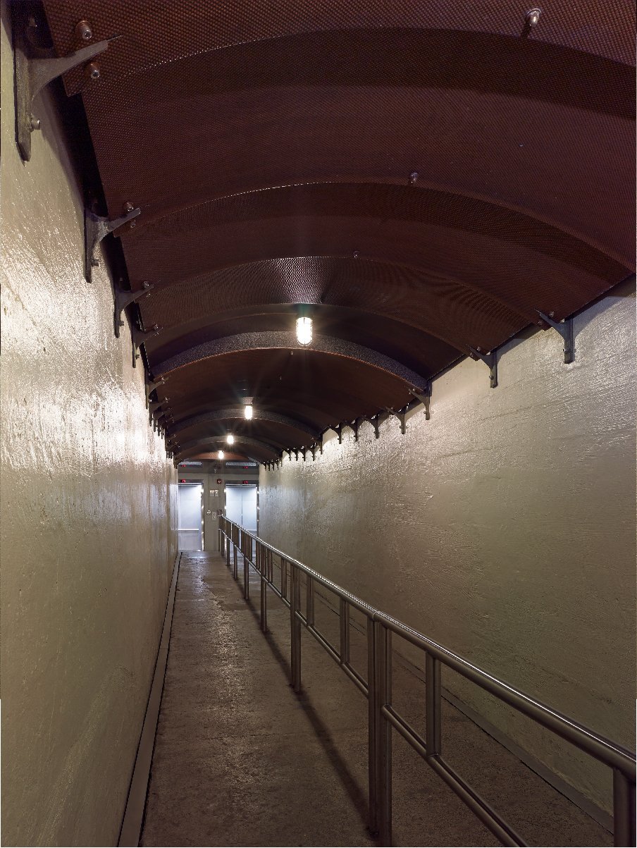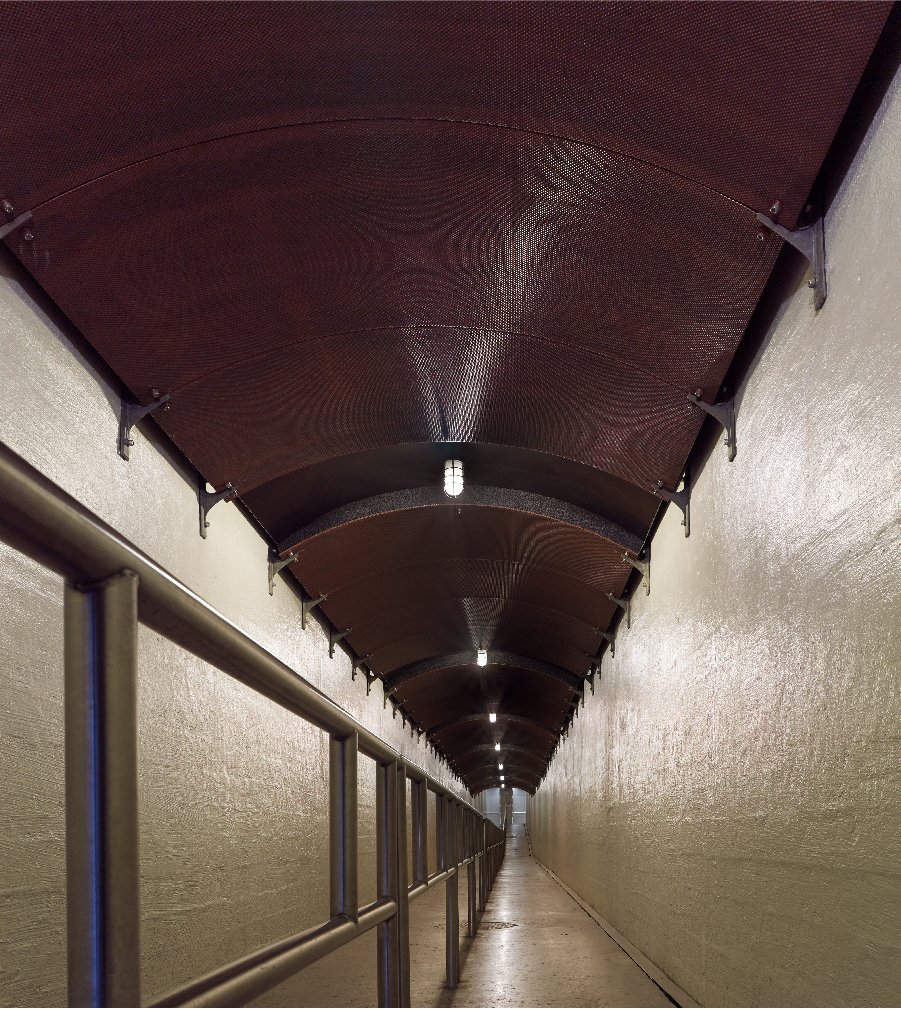 Aside from selecting material and developing a customized curved panel construction that could withstand high levels of moisture, while providing durability with an aesthetic appeal to fit within the architects’ design environment, the installation took place in very tight confines located 180 feet underground. This restricted space, mobility and ease of access during the installation of this project.