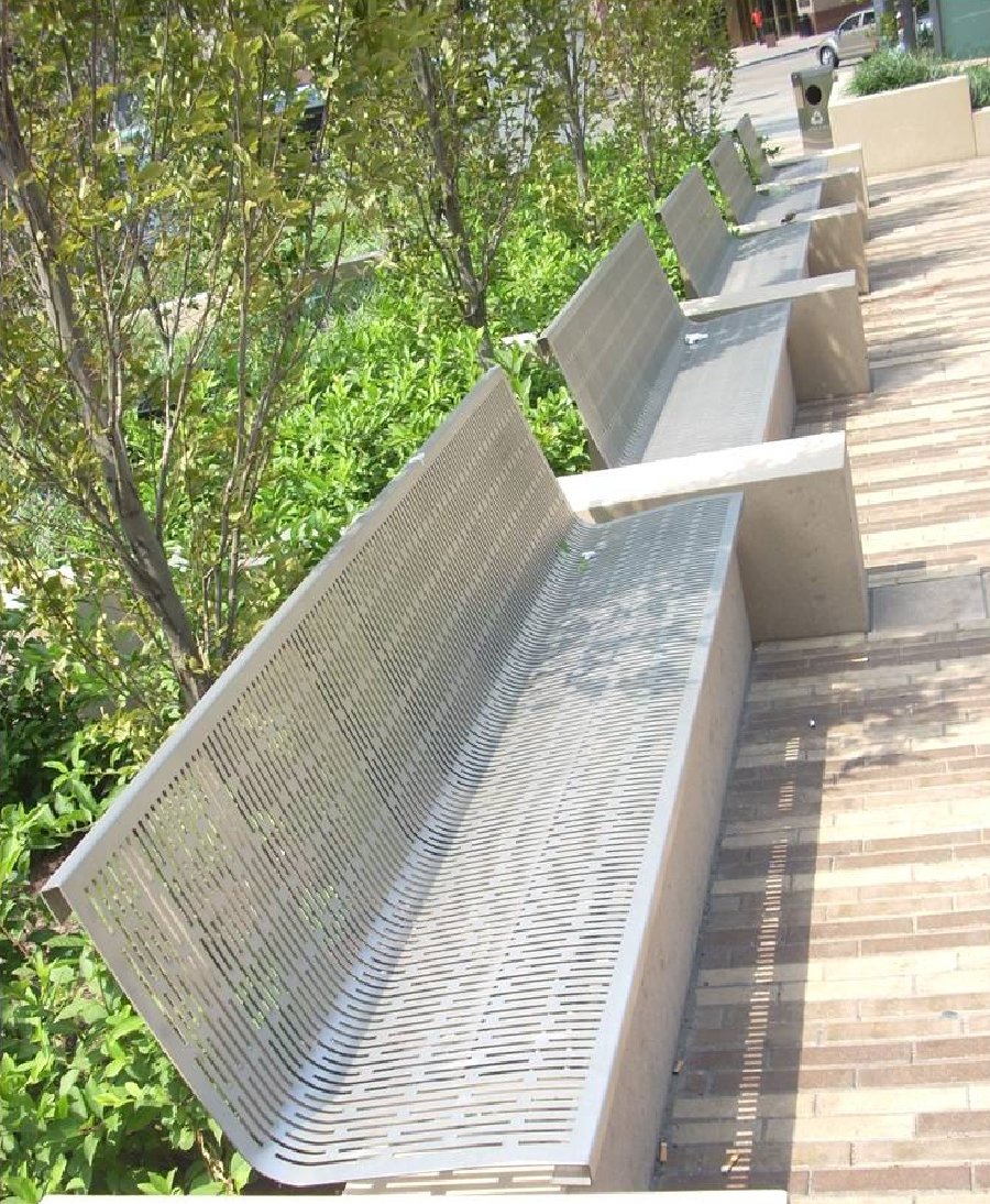 The park is the result of donations by two Pittsburgh area companies, Contrarian Micro Textures and ATI. ATI donated the materials for ATI 2003® lean duplex stainless steel with Contrarian Micro Textures’ InvariMatte® low glare finish. Contrarian donated the workers’ time to finish the stainless steel which was used on the benches, canopies and a large monolithic sign.